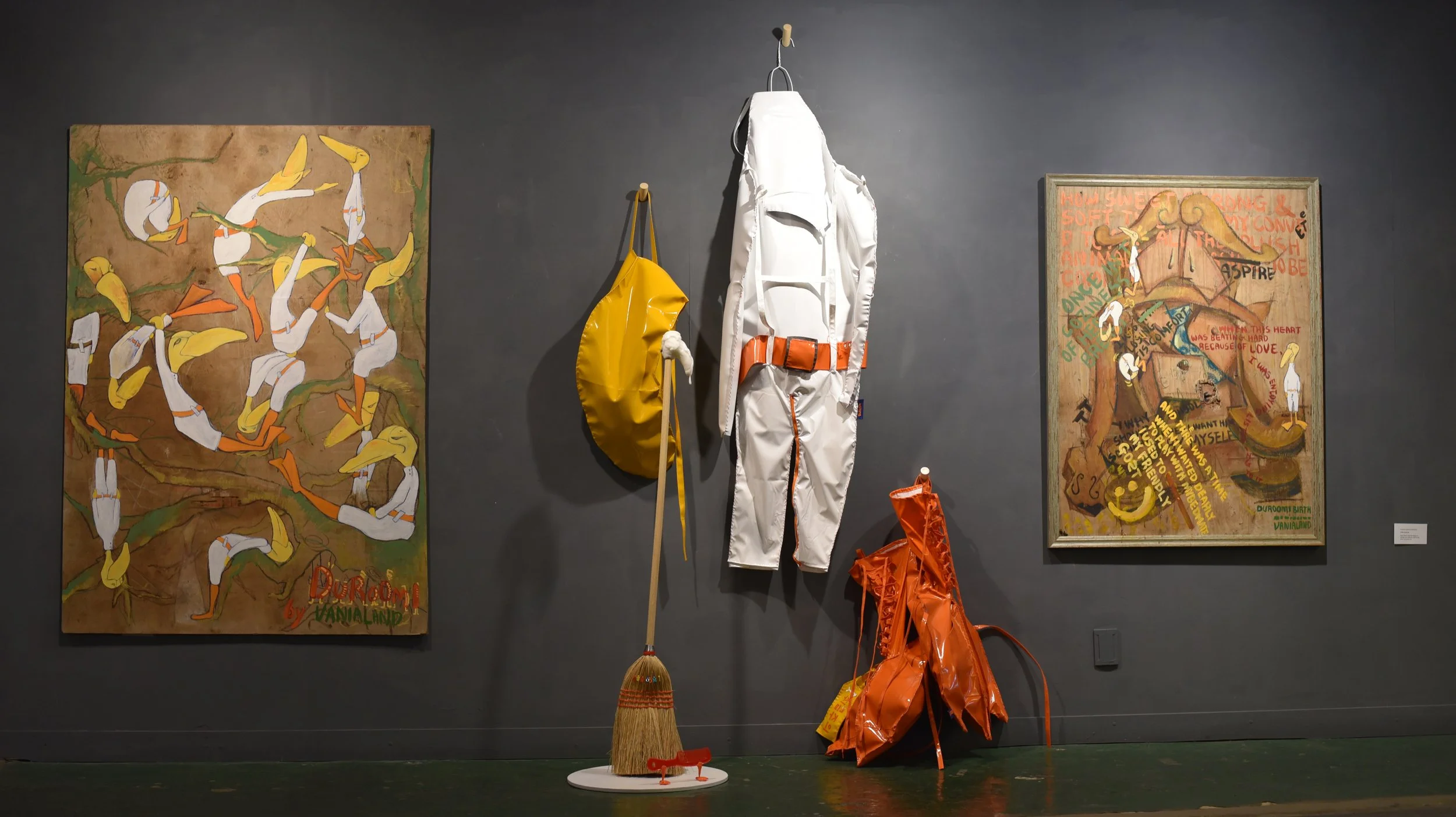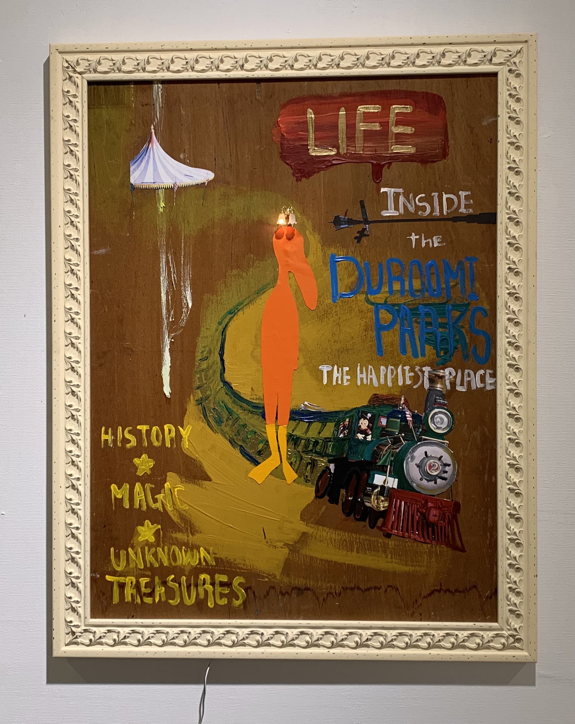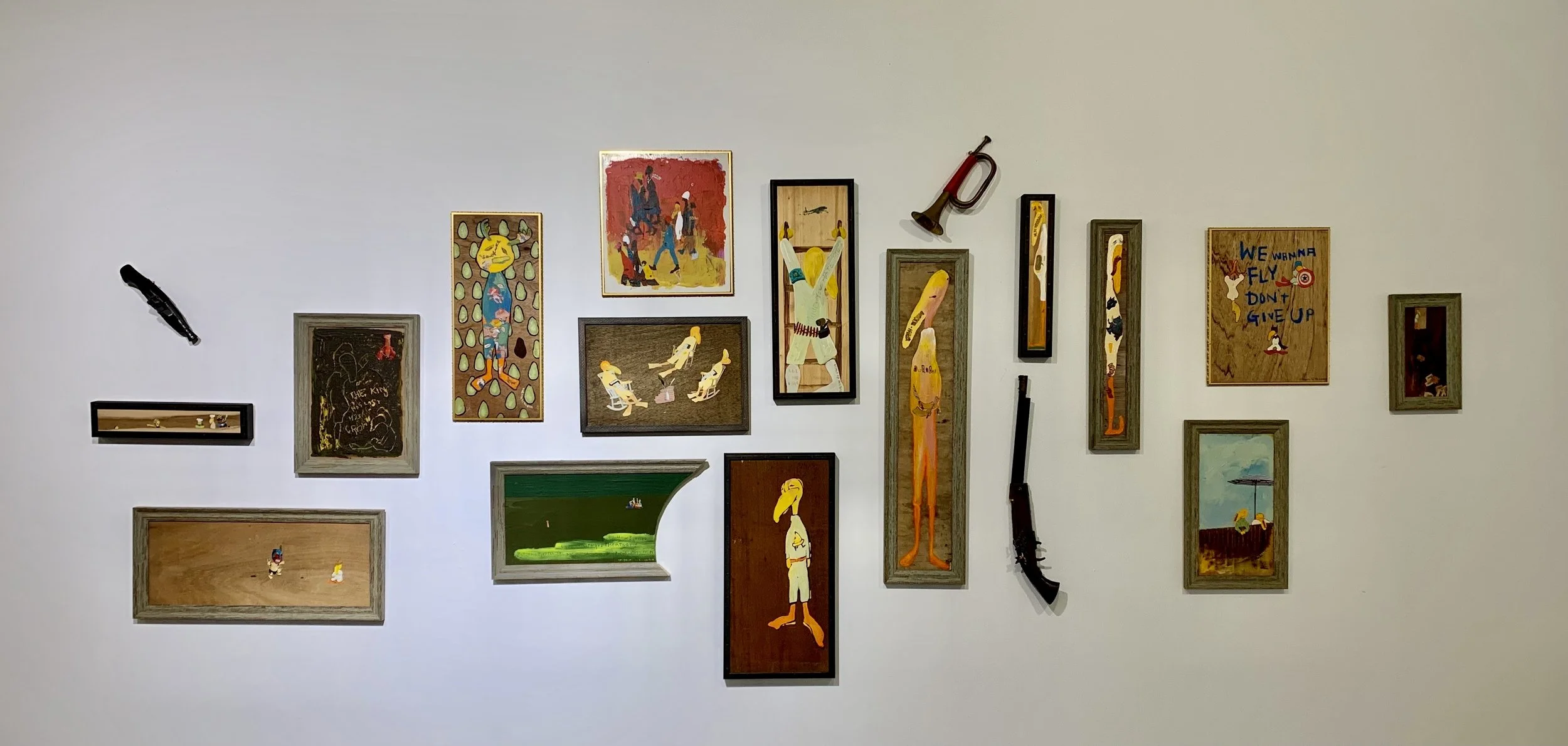 2021 | 손바느질 한 코스튬, 주은 나무판자에 유화와 파스텔 | 설치